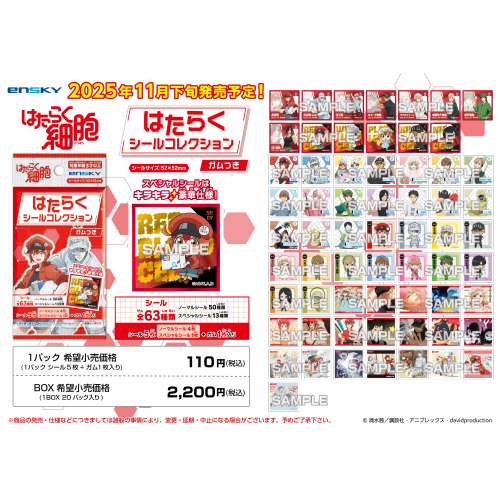 TVアニメ『はたらく細胞』のはたらくシールコレクション ガムつきが新登場。