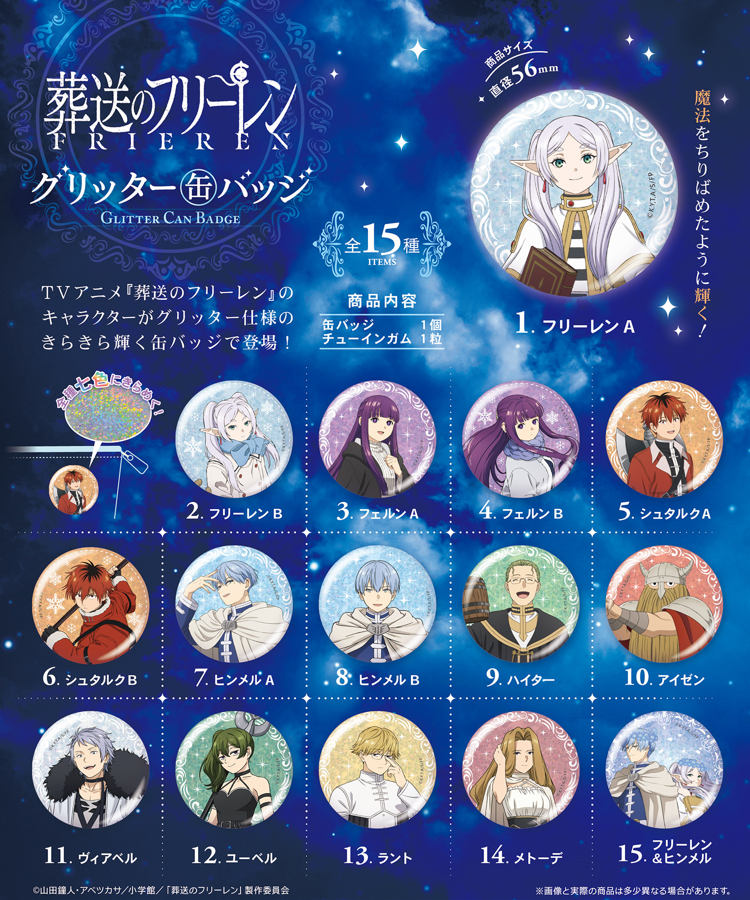 TVアニメ「葬送のフリーレン」の缶バッジが登場。きらきら輝く