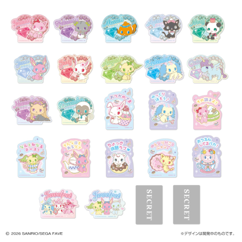 1月から12月までの誕生石をピックアップしたデザインや、ジュエルペットたちのほっこりセリフ入りデザイン等をラインナップ。シークレットはオーロラ箔押し仕様です!