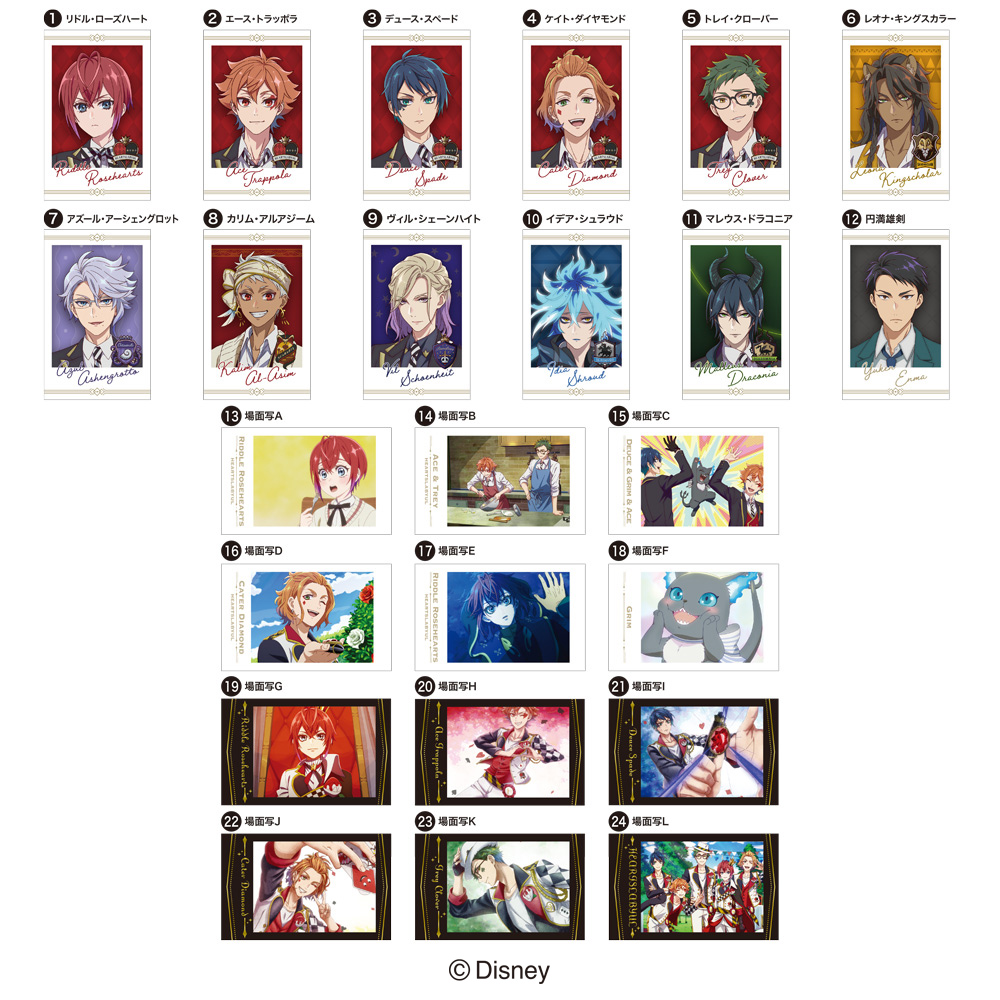 主人公にハーツラビュル寮生、各寮の寮長ほか、アニメのワンシーンをラインナップ。