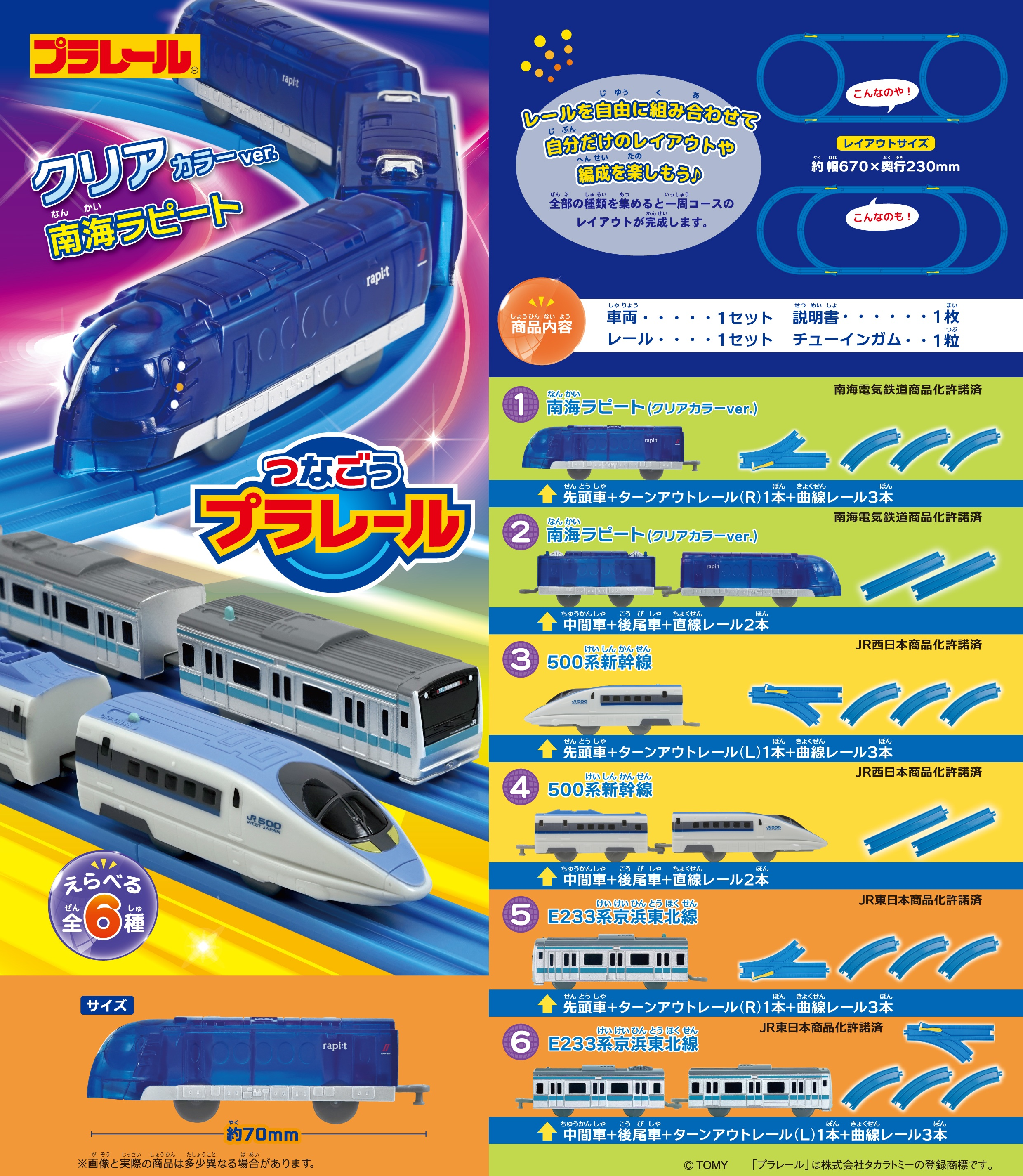 今回は南海ラピートのクリアカラーとN500系AとE233系京浜東北線になります。