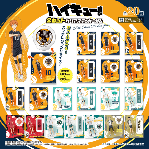 ハイキュー!!の2枚セットになったクリアステッカーです。全20種類。