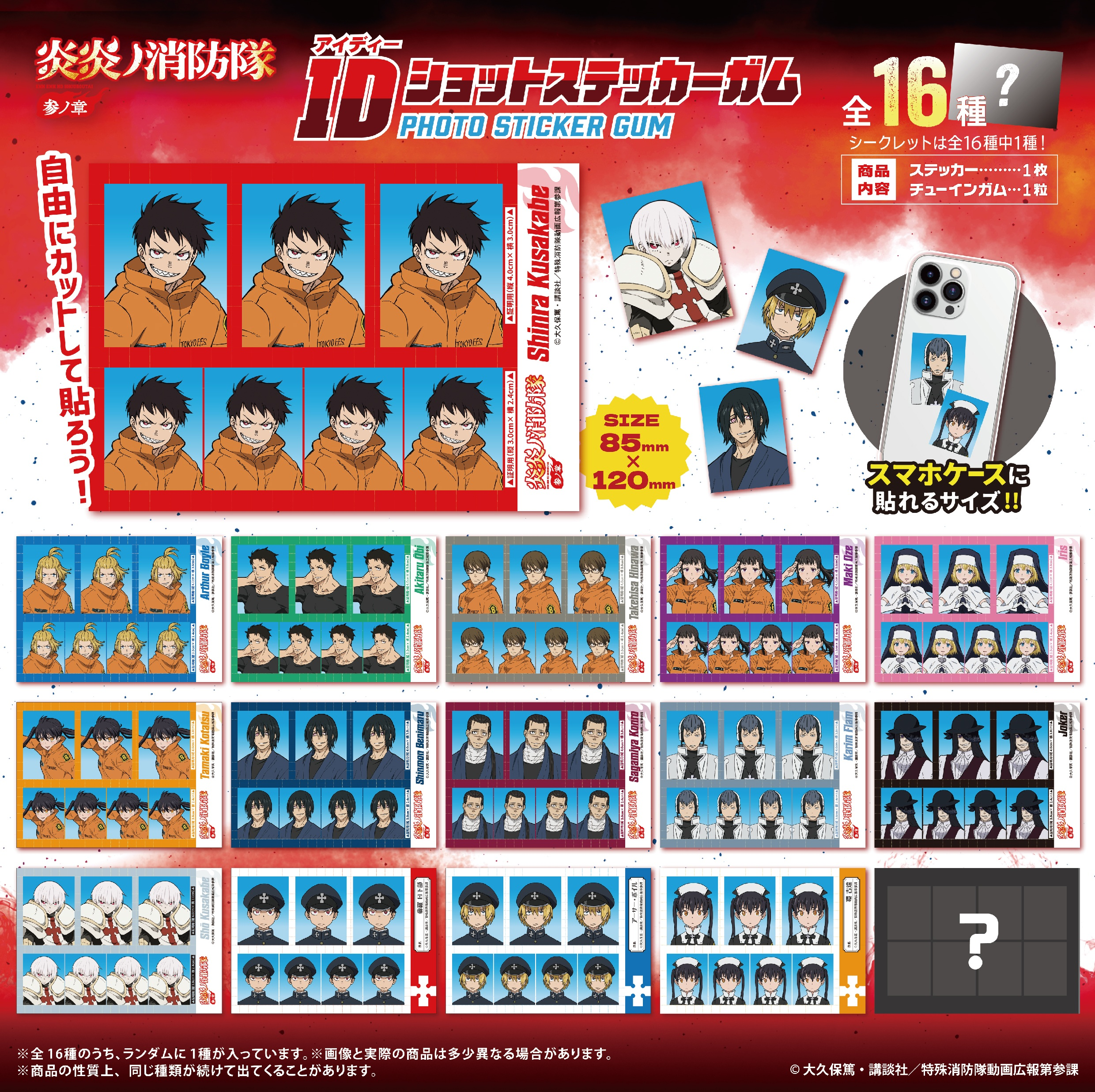 炎炎ノ消防隊の証明写真風ステッカーです。全15+シークレット1種類。