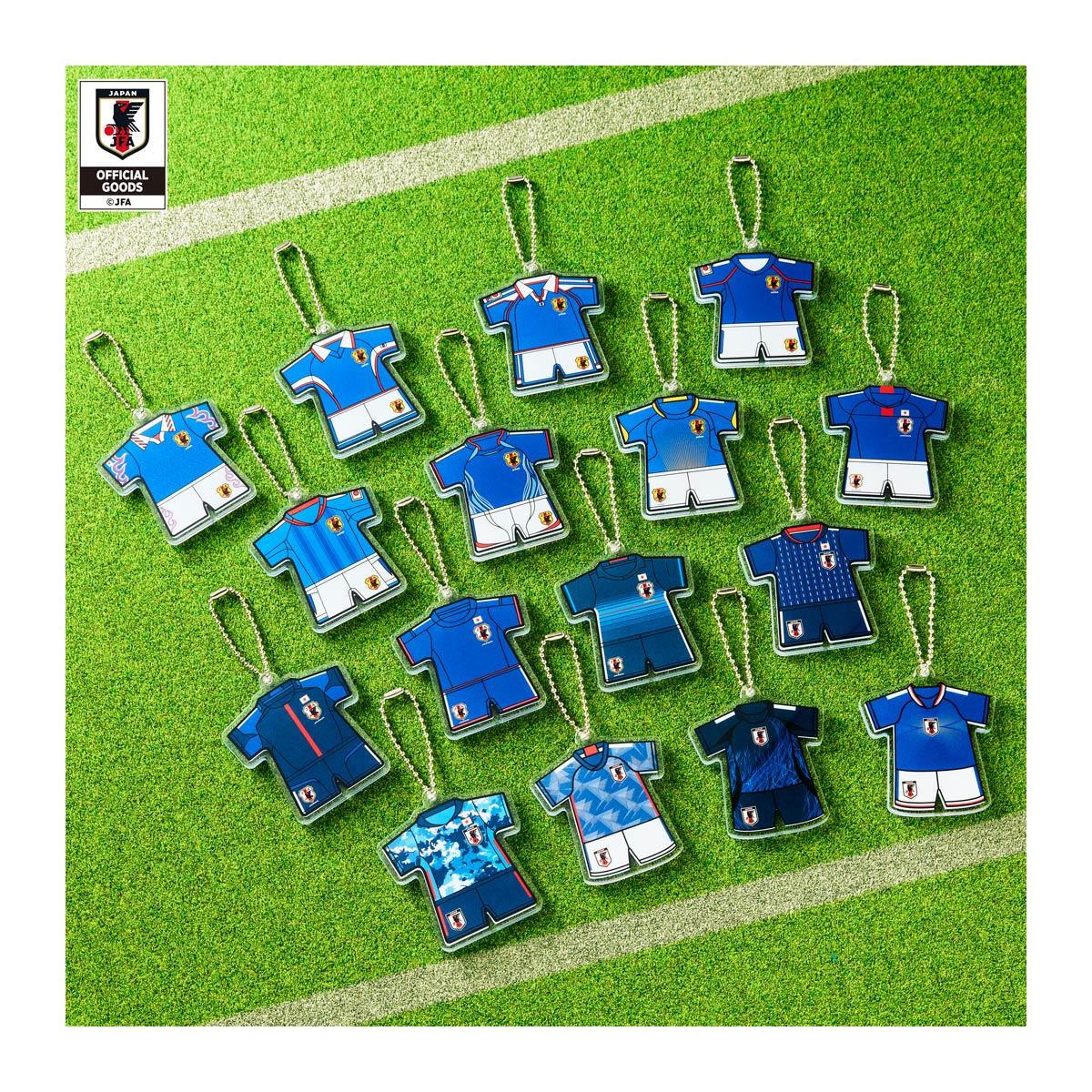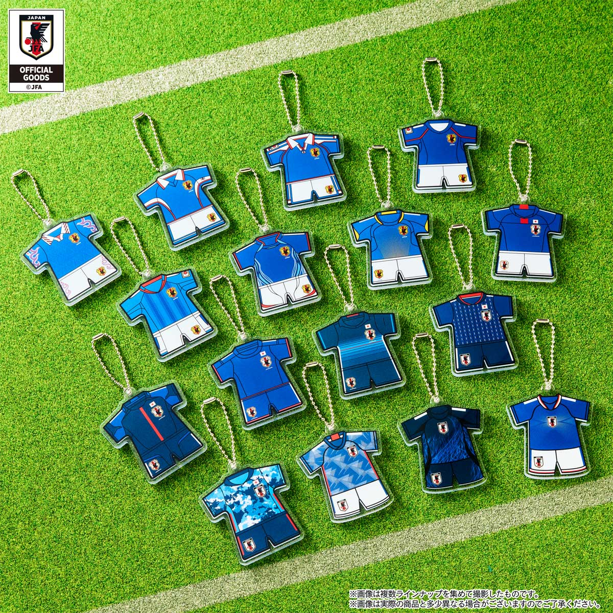 サッカー日本代表の歴代ユニフォーム型アクリルチャーム付ビスケット!
